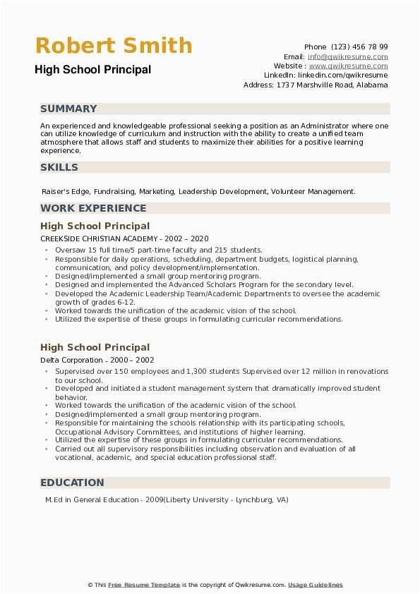 Behind you are searching for the absolute job, you will of course want to put your best foot deal with behind an impressive and well-formatted resume. One quirk of assuring that you have such a resume is to download a sample resume for school principal position in india. These templates can come up with the money for you bearing in mind the correct resume you are looking for or handily use them as a lead to make your own.