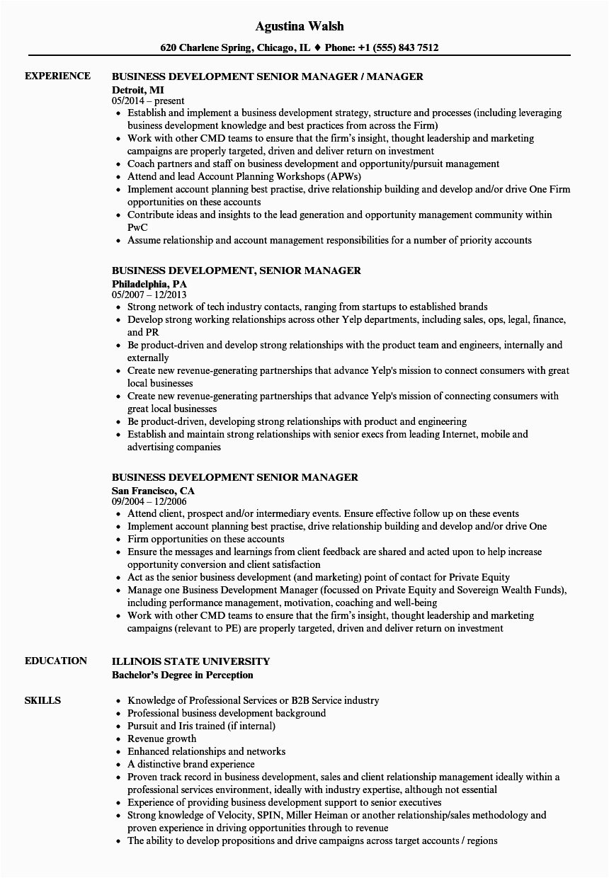 There are so many options for you as you search for the absolute sample resume for senior business development manager, and considering some hard pretense and perseverance on your part, you will find yourself past a first-class resume in no time, and hopefully, a first-class employer, as well!. For more counsel on resumes or for a sample resume for senior business development manager checkout this recommended websites.