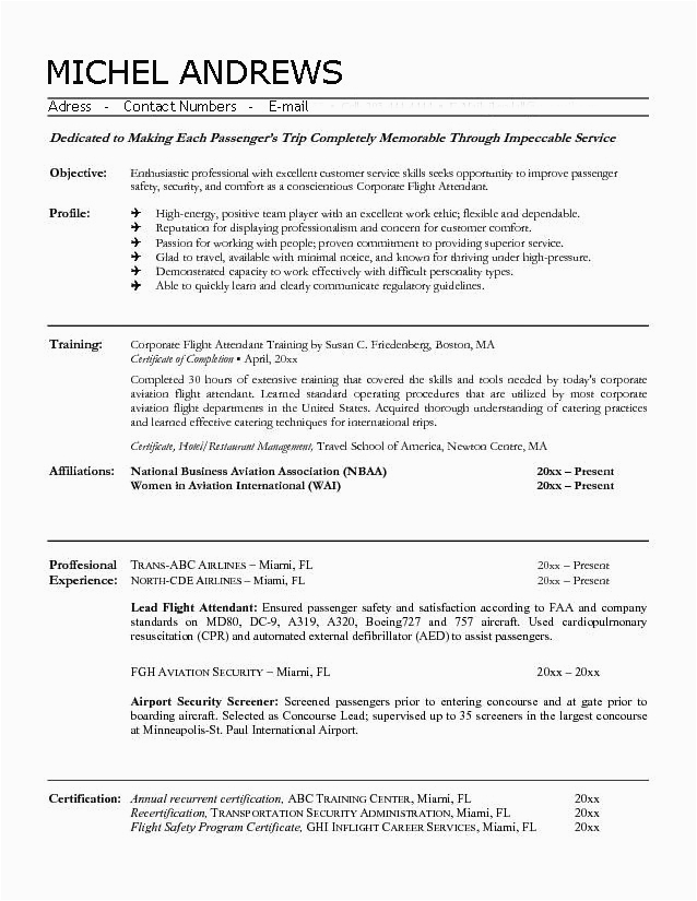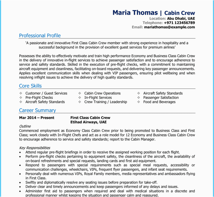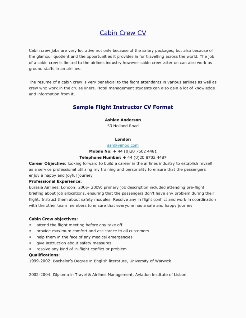 Sample Resume For Cabin Crew With No Experience
