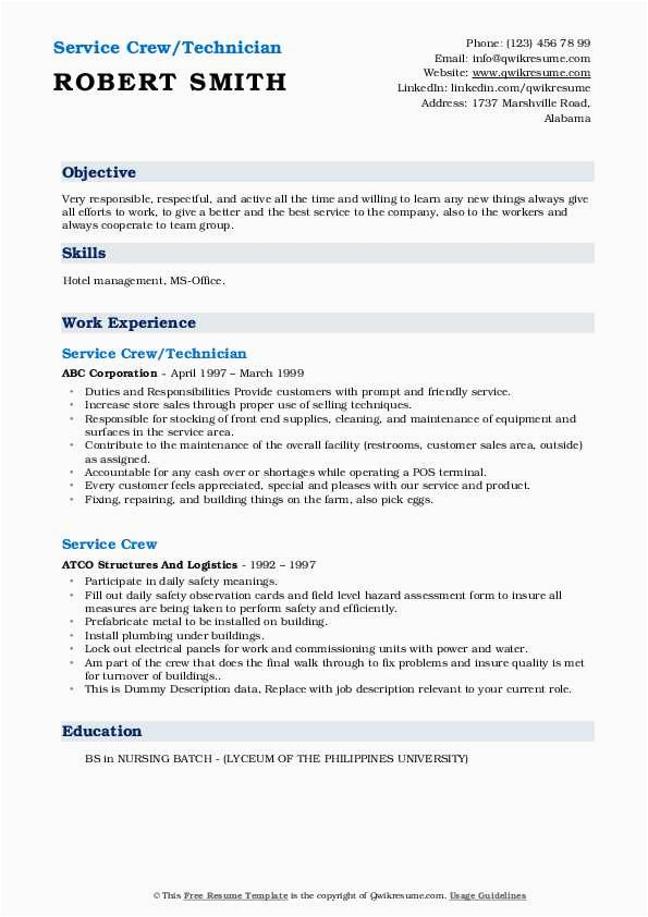And for every website you come across that has a sample resume for service crew no experience, you will find that there are specialized templates for just about any type of resume you wish to create. You can find a sample resume for service crew no experience for an entry-level position, and you can find a template for just roughly any type of job or career you are looking for.