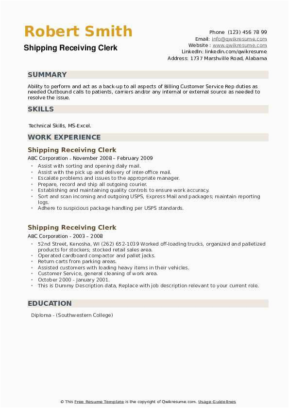 9 photos of the Sample Resume for Shipping and Receiving Worker