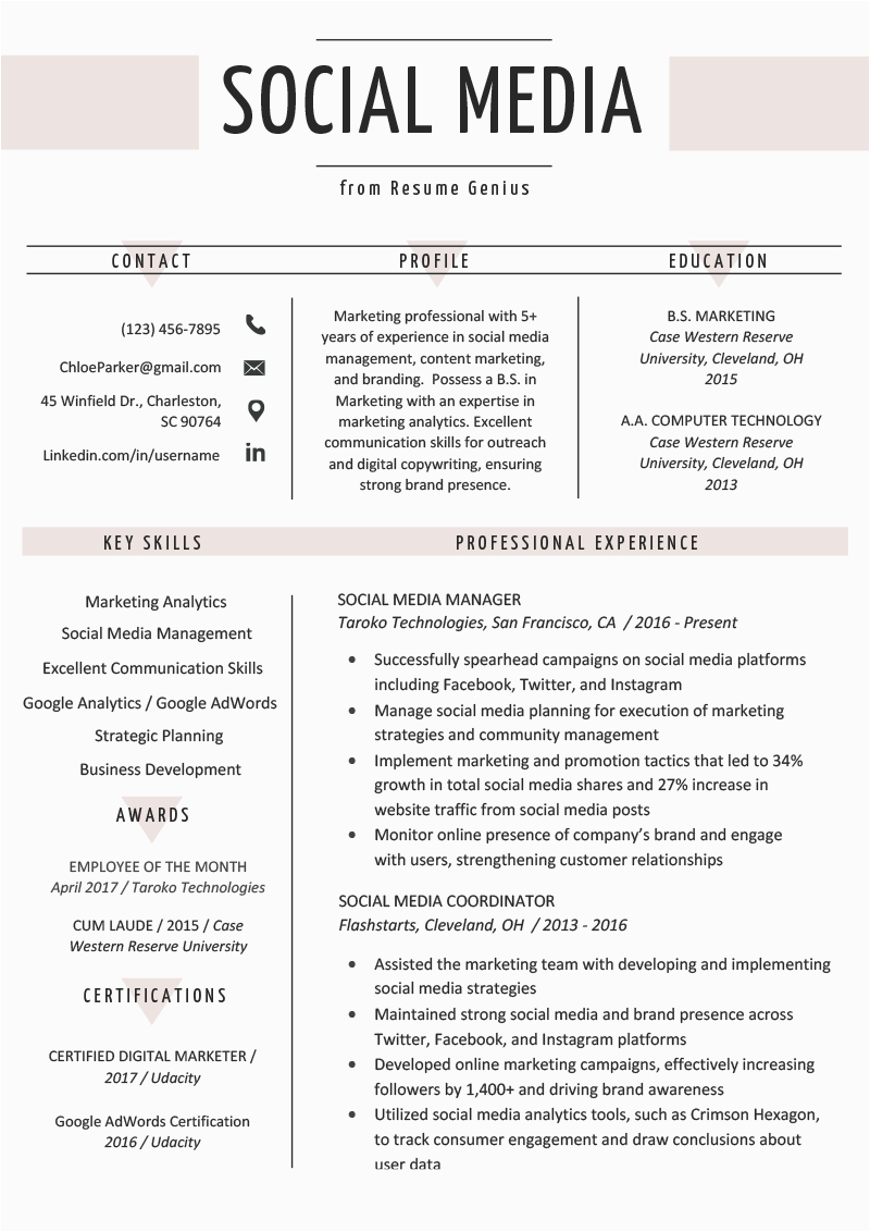 Do you have a pal or relative who has a job you worship and a fine grasp of how to format and make a resume? Why not ask them to see the resume that they used, and use that for your sample resume for social media manager?