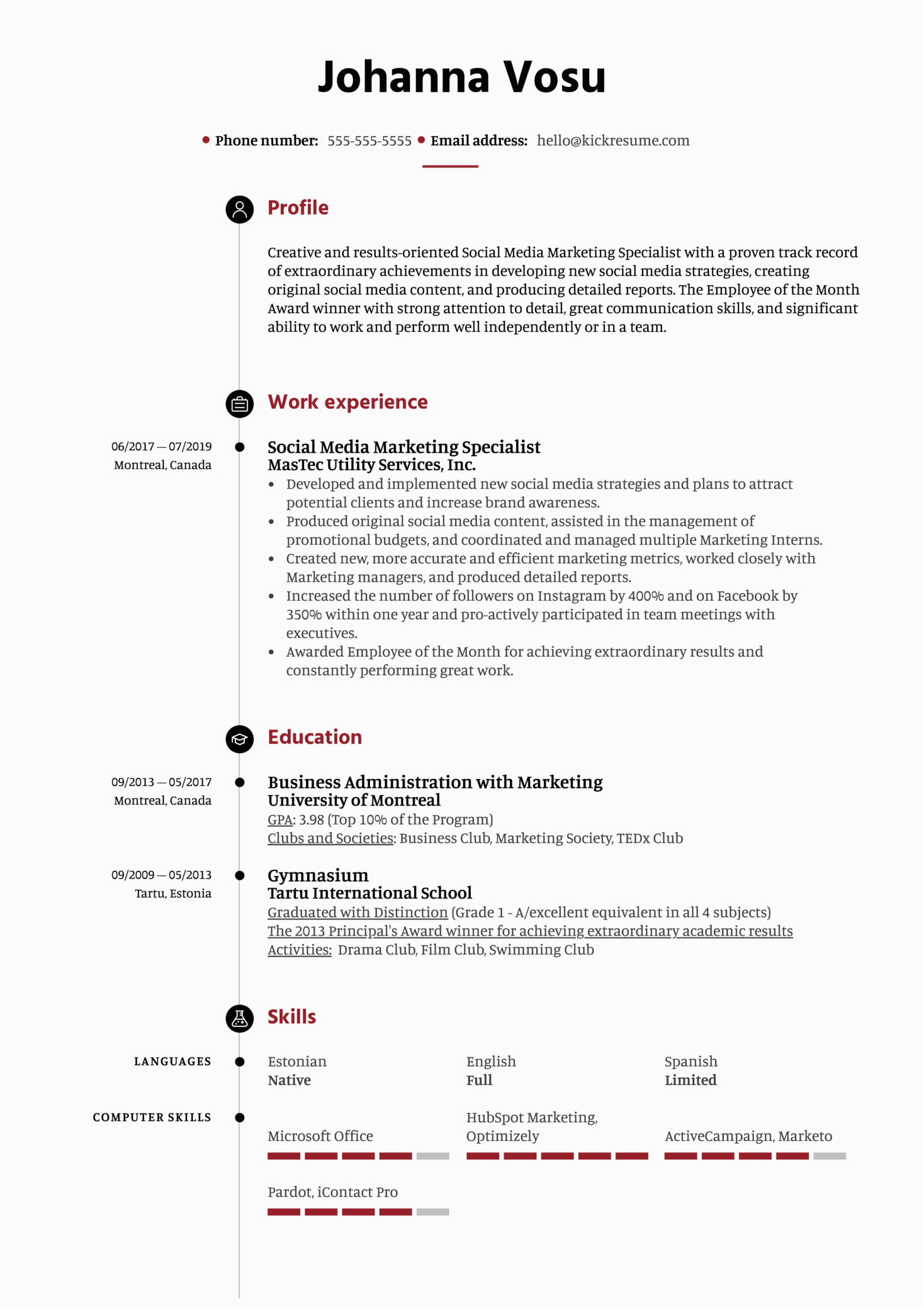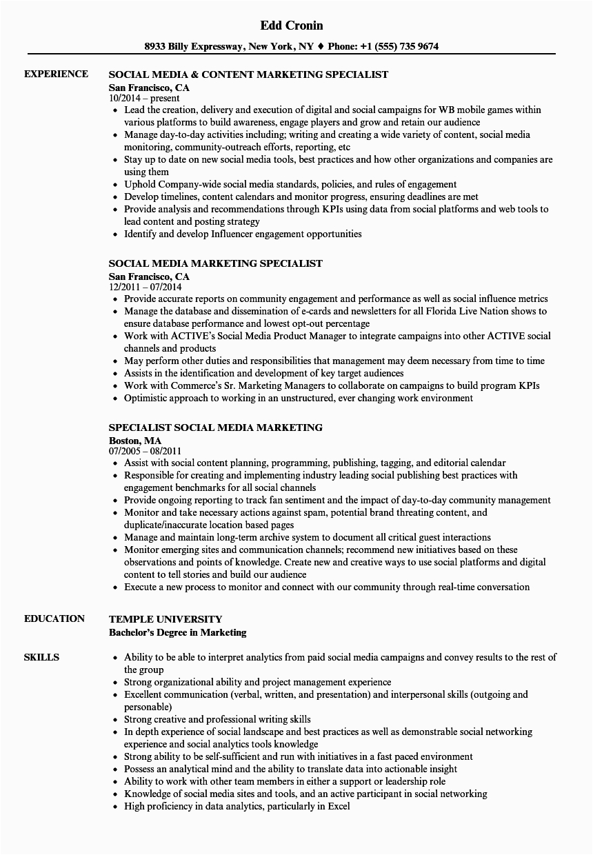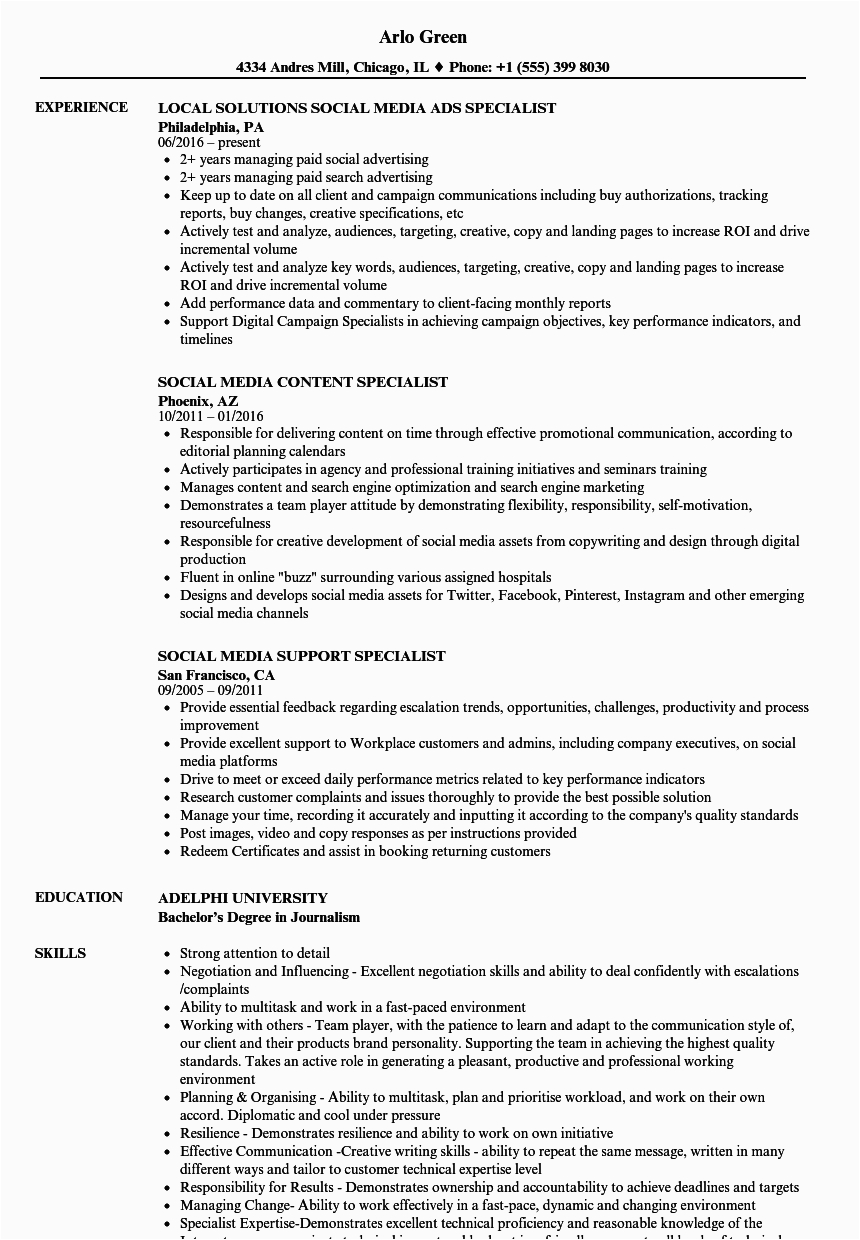 in the manner of you are searching for the perfect job, you will of course want to put your best foot tackle in imitation of an fabulous and well-formatted resume. One showing off of assuring that you have such a resume is to download a sample resume for social media specialist. These templates can give you in the same way as the perfect resume you are looking for or understandably use them as a guide to make your own.