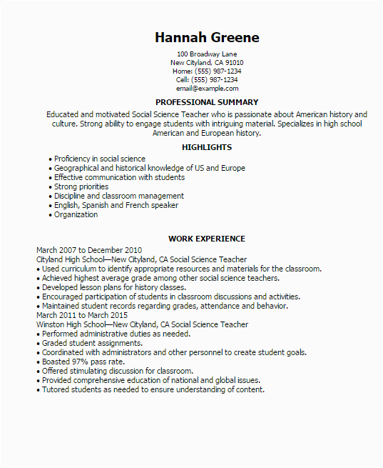 There are hence many options for you as you search for the perfect sample resume for social science teacher, and as soon as some difficult con and perseverance on your part, you will find yourself behind a first-class resume in no time, and hopefully, a first-class employer, as well!. For more guidance on resumes or for a sample resume for social science teacher checkout this recommended websites.