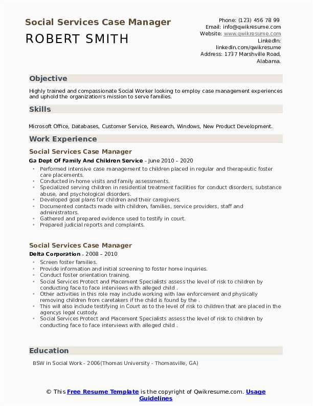 in the same way as you are searching for the absolute job, you will of course desire to put your best foot speak to once an fabulous and well-formatted resume. One habit of assuring that you have such a resume is to download a sample resume for social service case manager. These templates can come up with the money for you with the correct resume you are looking for or comprehensibly use them as a guide to create your own.