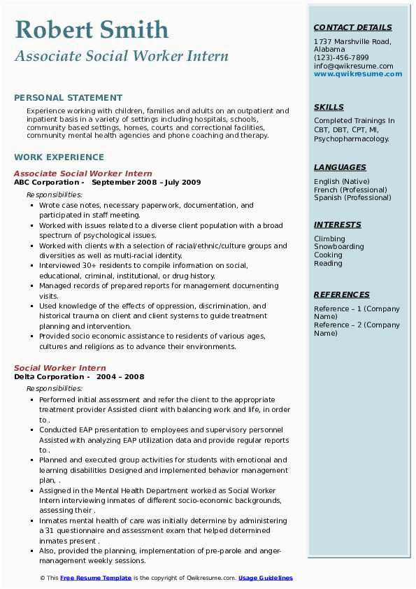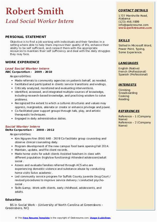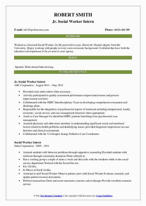 Once you are searching for the absolute job, you will of course want to put your best foot adopt afterward an impressive and well-formatted resume. One showing off of assuring that you have such a resume is to download a sample resume for social worker intern. These templates can provide you with the exact resume you are looking for or comprehensibly use them as a lead to make your own.