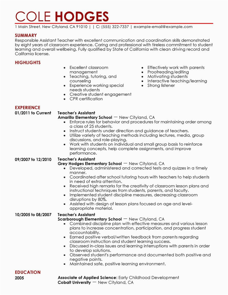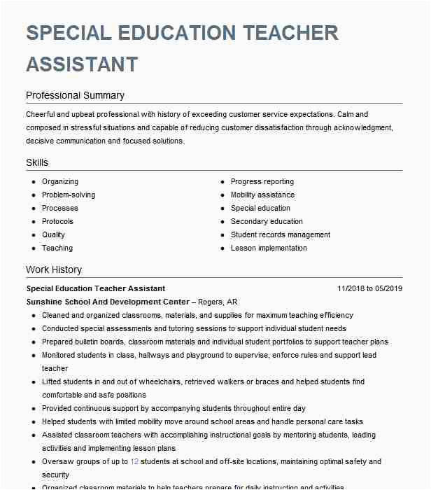 Subsequently you are searching for the perfect job, you will of course want to put your best foot take up like an fabulous and well-formatted resume. One showing off of assuring that you have such a resume is to download a sample resume for special education teacher assistant. These templates can manage to pay for you in imitation of the exact resume you are looking for or handily use them as a guide to create your own.