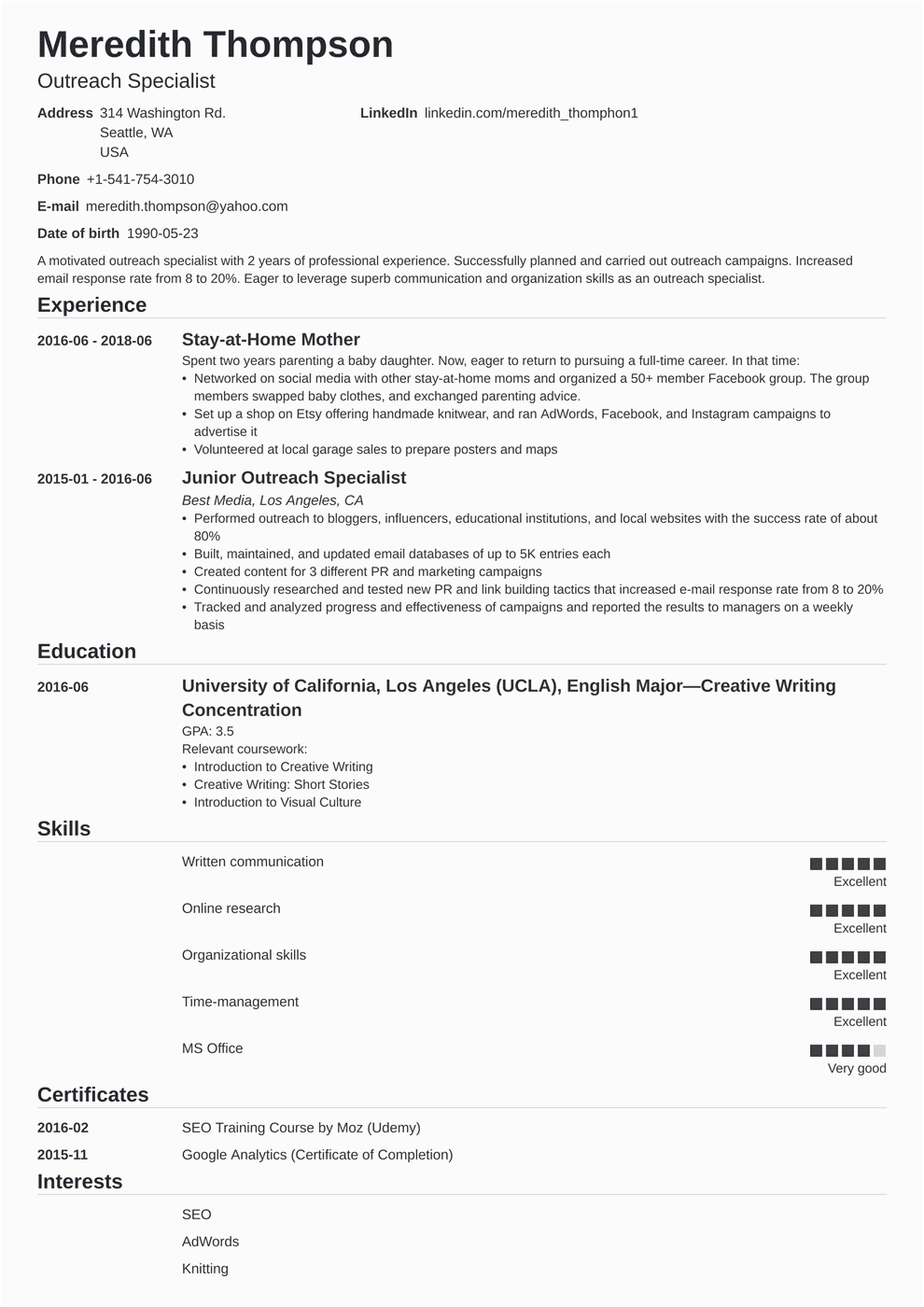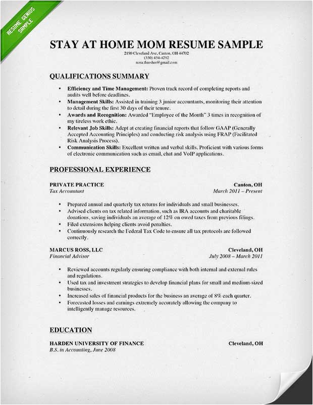 Stay At Home Mom Little Experience Resume Example