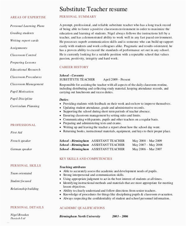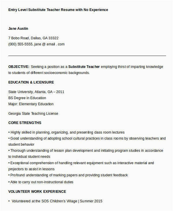Similar to you are searching for the absolute job, you will of course want to put your best foot tackle as soon as an fabulous and well-formatted resume. One way of assuring that you have such a resume is to download a sample resume for substitute teacher with no experience. These templates can provide you when the correct resume you are looking for or simply use them as a guide to create your own.