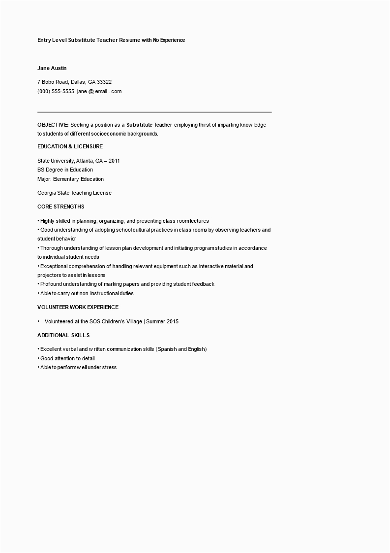 And for every website you come across that has a sample resume for substitute teacher with no experience, you will find that there are specialized templates for just practically any type of resume you wish to create. You can find a sample resume for substitute teacher with no experience for an entry-level position, and you can locate a template for just nearly any type of job or career you are looking for.