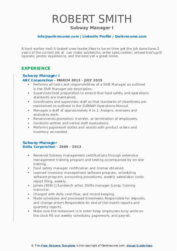 Sample Resume for Subway Restaurant Worker Subway Operator Resume [ 12 Samples ] Pdf and all other pictures, designs or photos on our website are copyright of their respective owners. we get our pictures from another websites, search engines and other sources to use as an inspiration for you. please contact us if you think we are infringing copyright of your pictures using contact page. we will be very happy to help you.