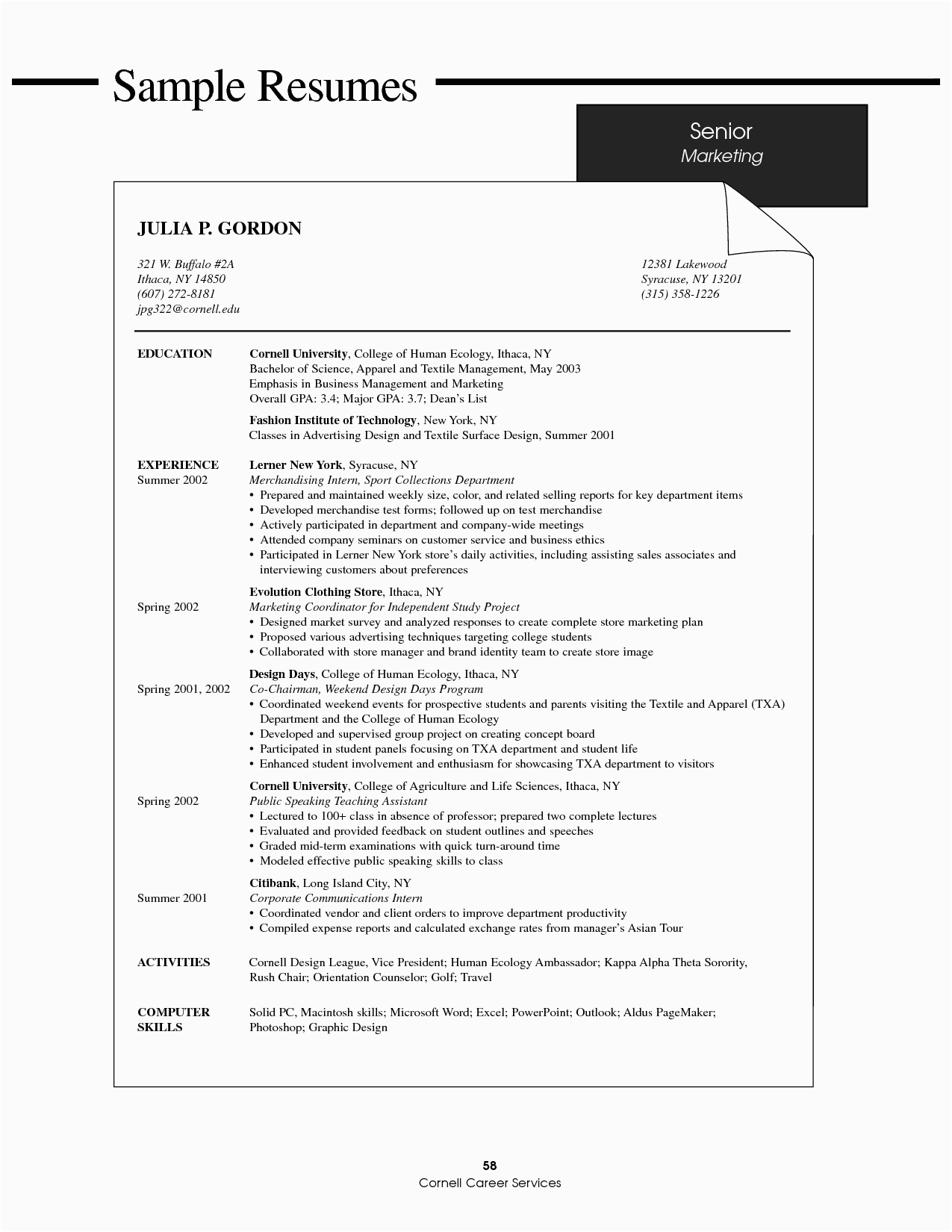 There will be many career books and guides that you can search out at the library or bookstore, which will have at least one sample resume for summer job college student for you to study, oftentimes more.