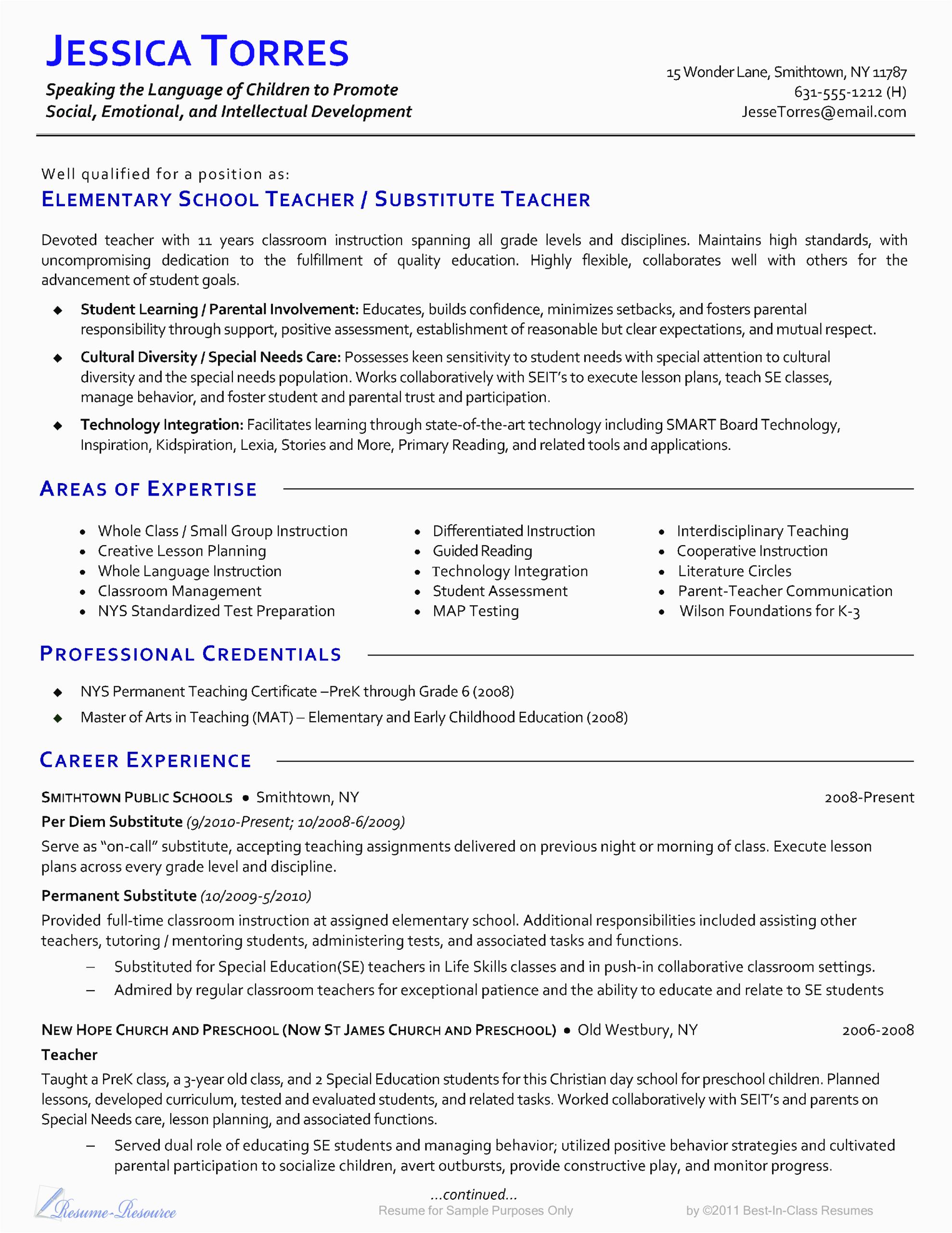 9 photos of the Sample Resume for Teacher with Little Experience