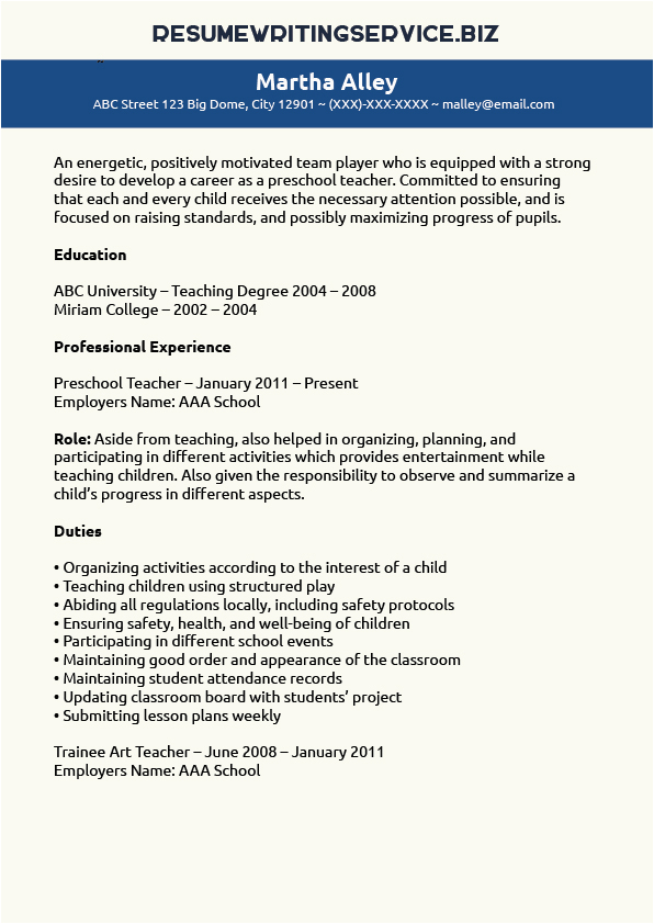 Sample Resume for Teachers for Preschool Sample Preschool Teacher Resume and all other pictures, designs or photos on our website are copyright of their respective owners. we get our pictures from another websites, search engines and other sources to use as an inspiration for you. please contact us if you think we are infringing copyright of your pictures using contact page. we will be very happy to help you.