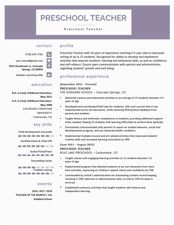 have new images for Sample Resume for Teachers for Preschool Sample Preschool Teacher Resume? please contact us immediately.