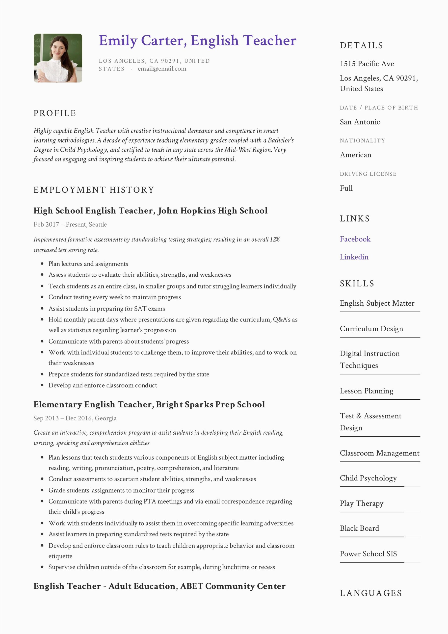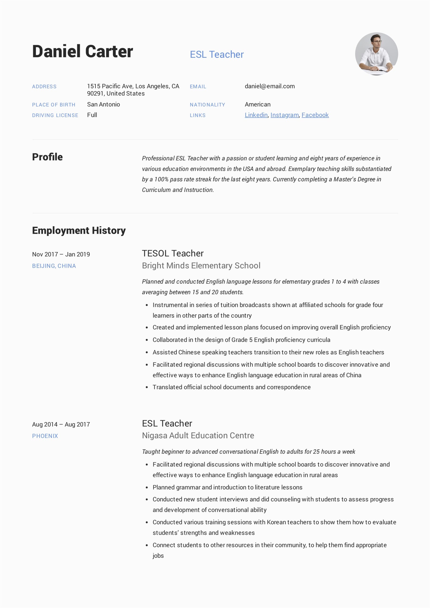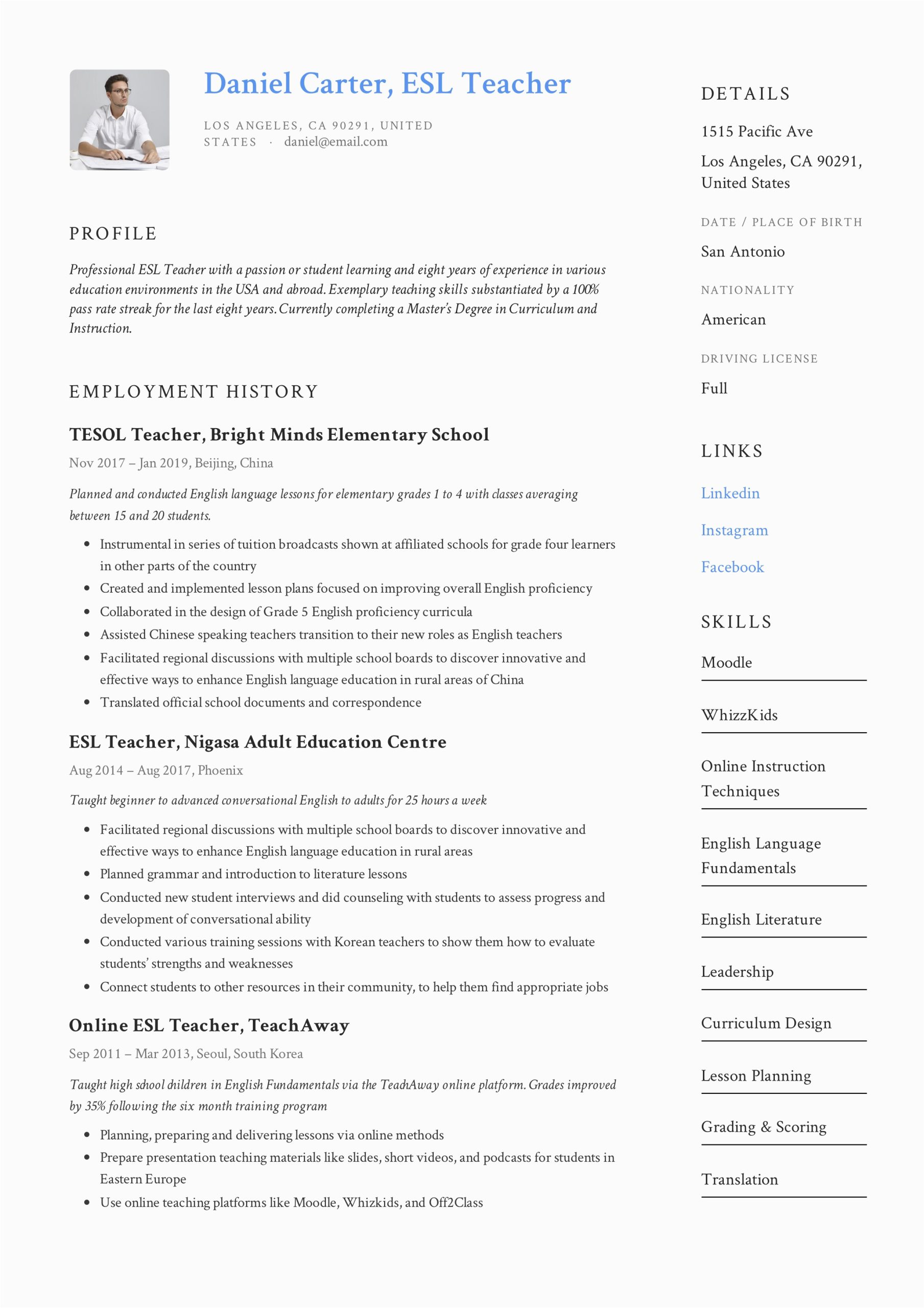 9 photos of the Sample Resume for Teaching English Online
