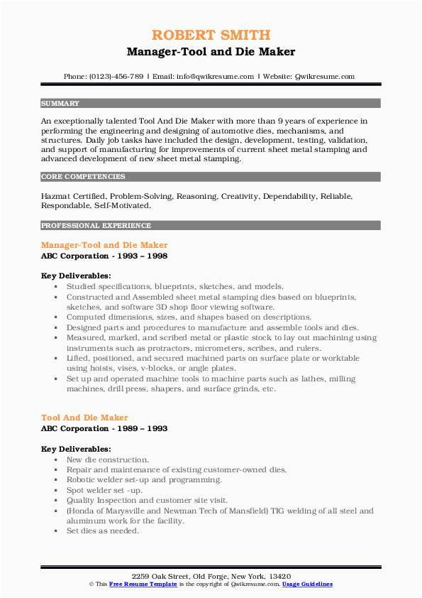 Sample Resume for tool and Die tool and Die Maker Resume Samples and all other pictures, designs or photos on our website are copyright of their respective owners. we get our pictures from another websites, search engines and other sources to use as an inspiration for you. please contact us if you think we are infringing copyright of your pictures using contact page. we will be very happy to help you.