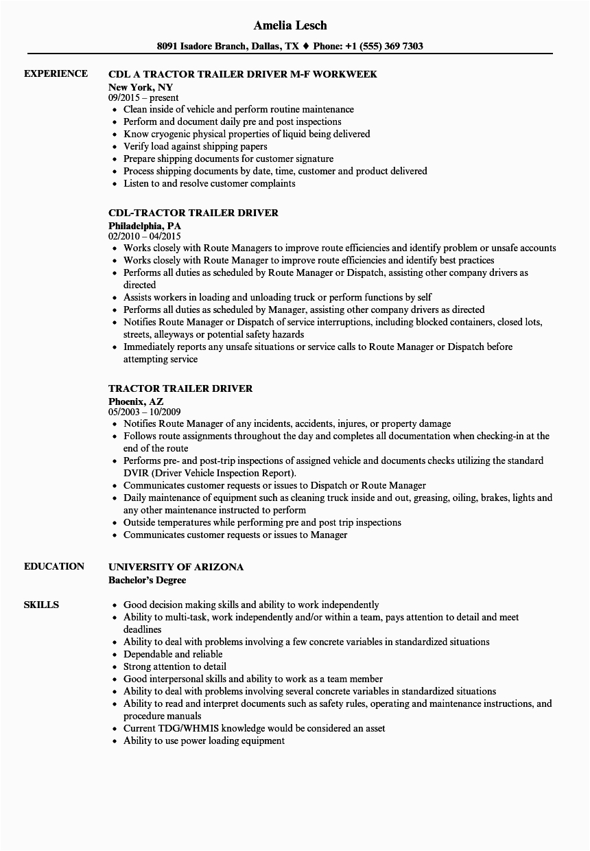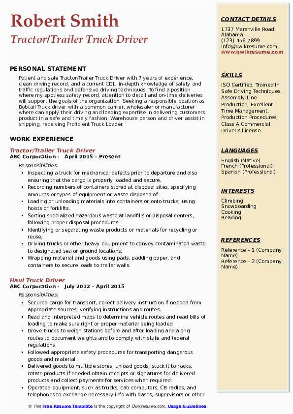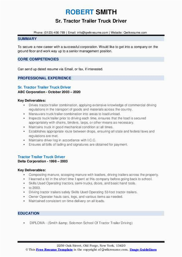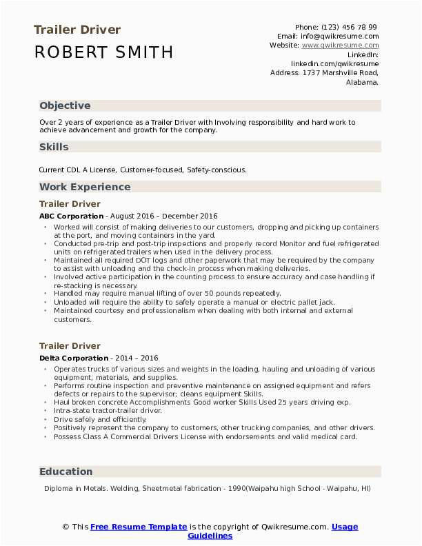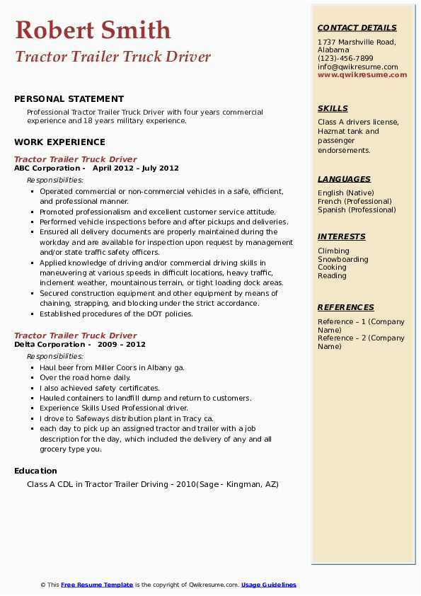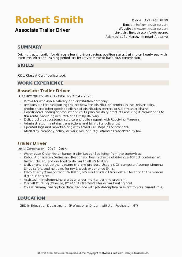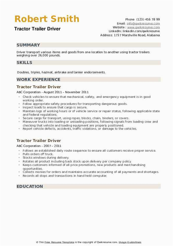 Sample Resume for Trailer Truck Driver Tractor Trailer Driver Resume Samples and all other pictures, designs or photos on our website are copyright of their respective owners. we get our pictures from another websites, search engines and other sources to use as an inspiration for you. please contact us if you think we are infringing copyright of your pictures using contact page. we will be very happy to help you.