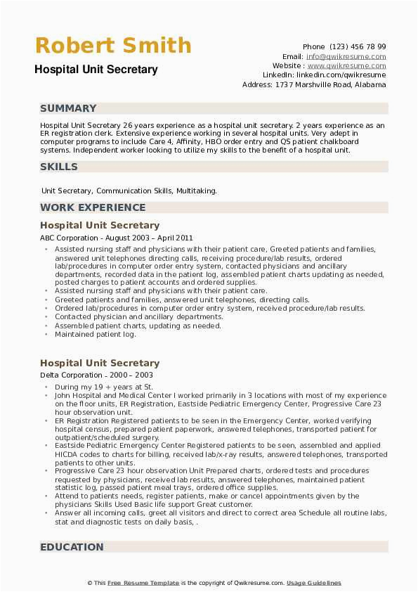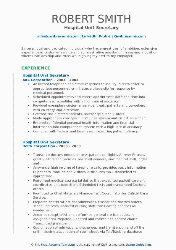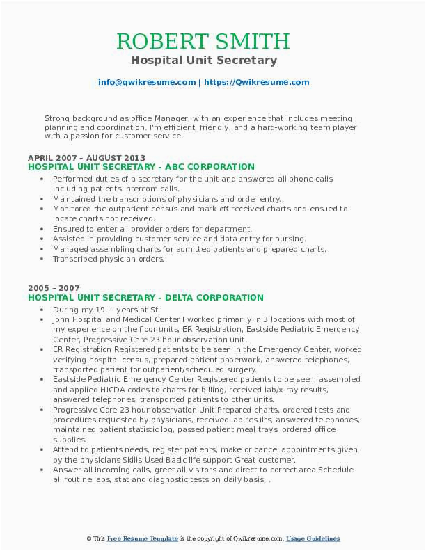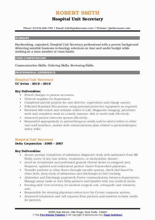 9 photos of the Sample Resume for Unit Secretary In A Hospital