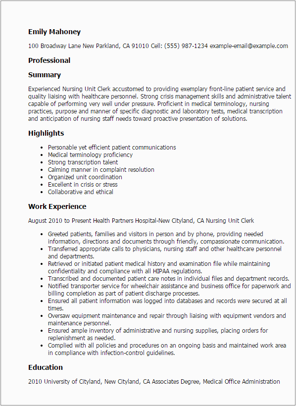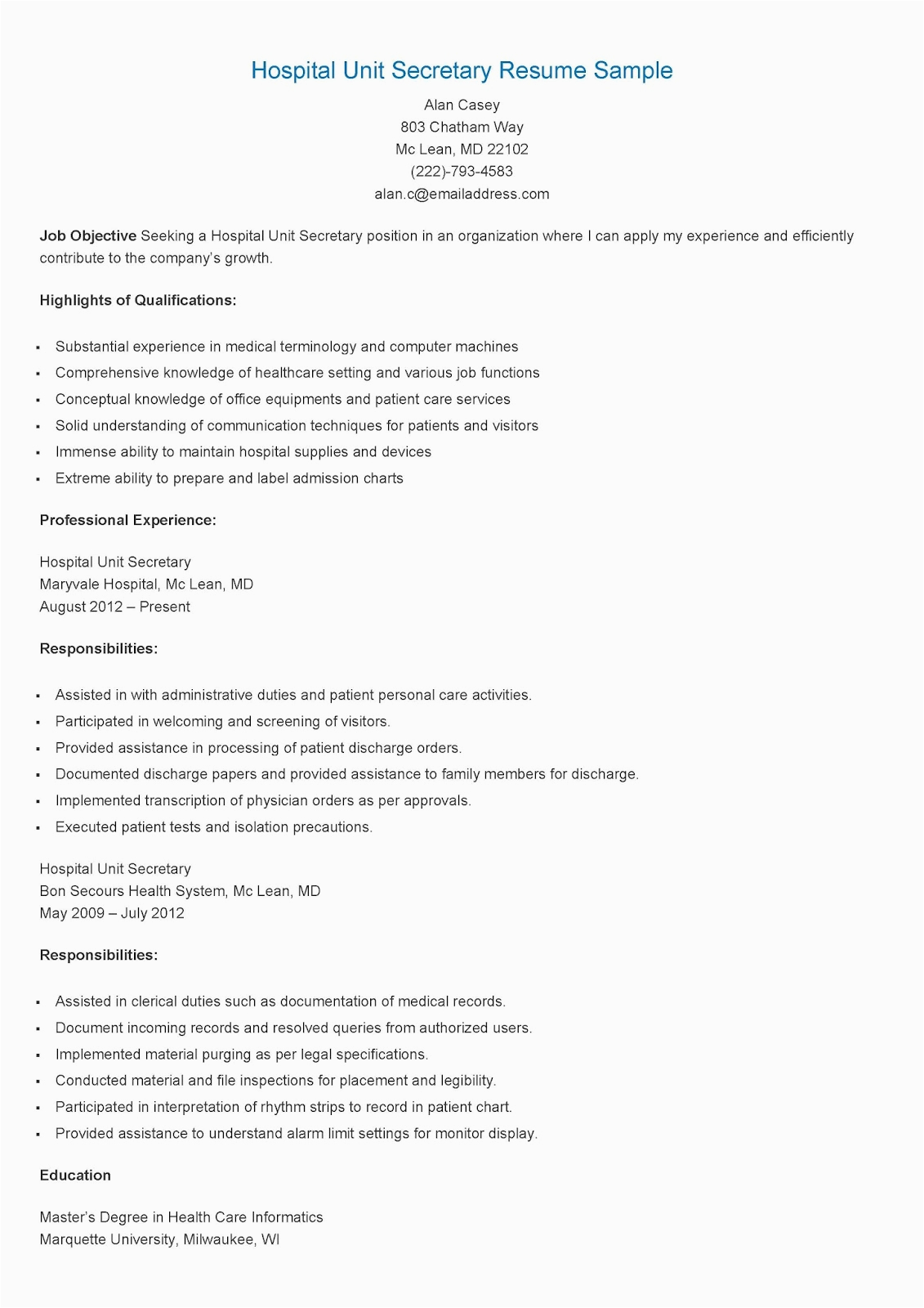 There are suitably many options for you as you search for the perfect sample resume for unit secretary in a hospital, and in the same way as some hard sham and perseverance upon your part, you will locate yourself afterward a first-class resume in no time, and hopefully, a first-class employer, as well!. For more information upon resumes or for a sample resume for unit secretary in a hospital checkout this recommended websites.