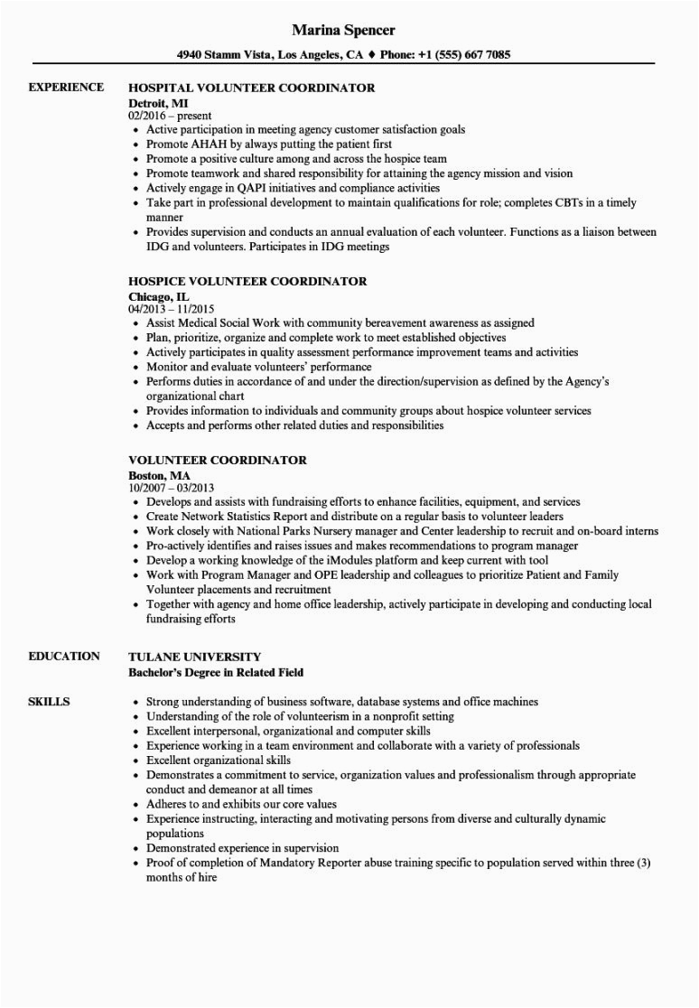 Free Volunteer Coordinator Resume Samples Velvet Jobs