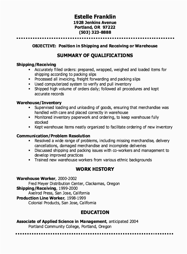 9 photos of the Sample Resume for Warehouse Shipping and Receiving
