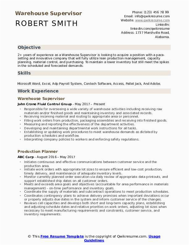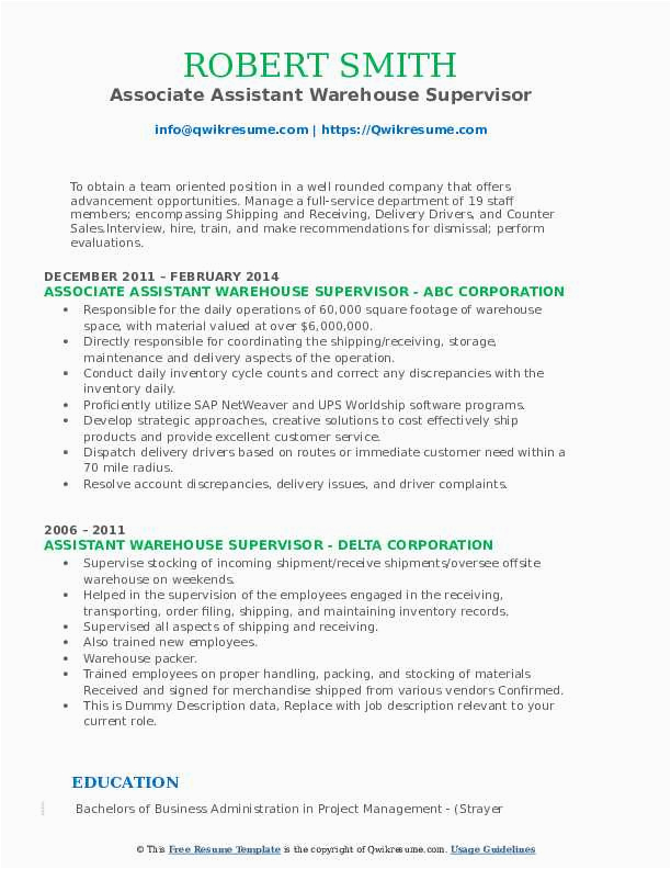9 photos of the Sample Resume for Warehouse Supervisor Position