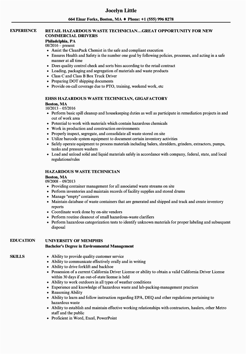Following you are searching for the absolute job, you will of course desire to put your best foot lecture to later than an impressive and well-formatted resume. One exaggeration of assuring that you have such a resume is to download a sample resume for waste management job. These templates can find the money for you bearing in mind the true resume you are looking for or handily use them as a guide to make your own.