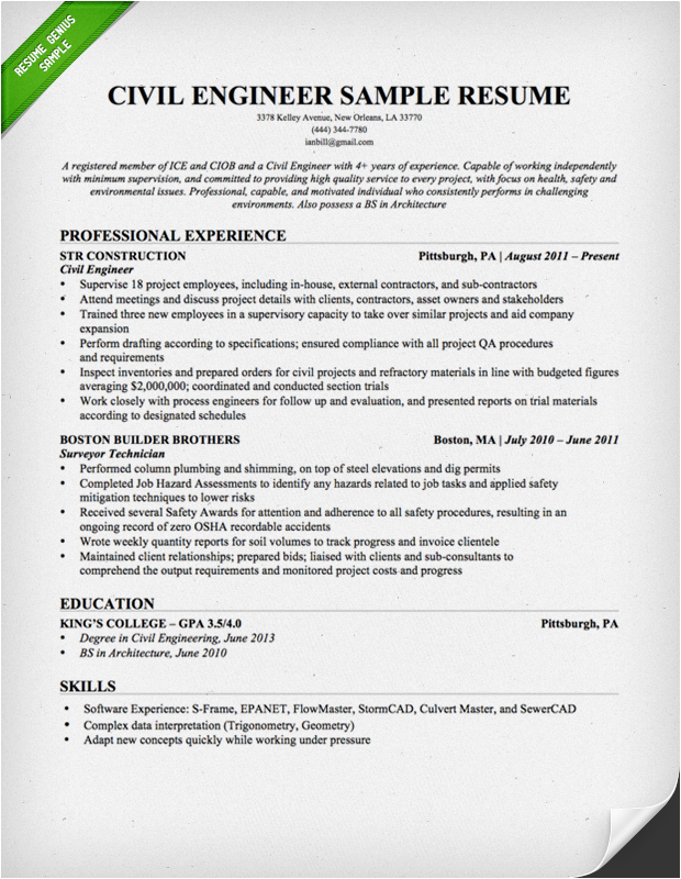 Do you have a friend or relative who has a job you admire and a good grasp of how to format and make a resume? Why not question them to see the resume that they used, and use that for your sample resume format for civil engineers?