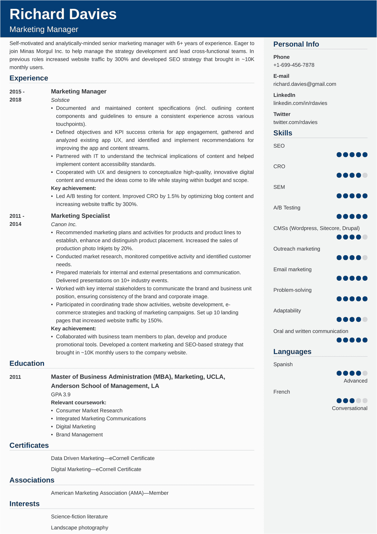 9 photos of the Sample Resume format for Marketing Professional