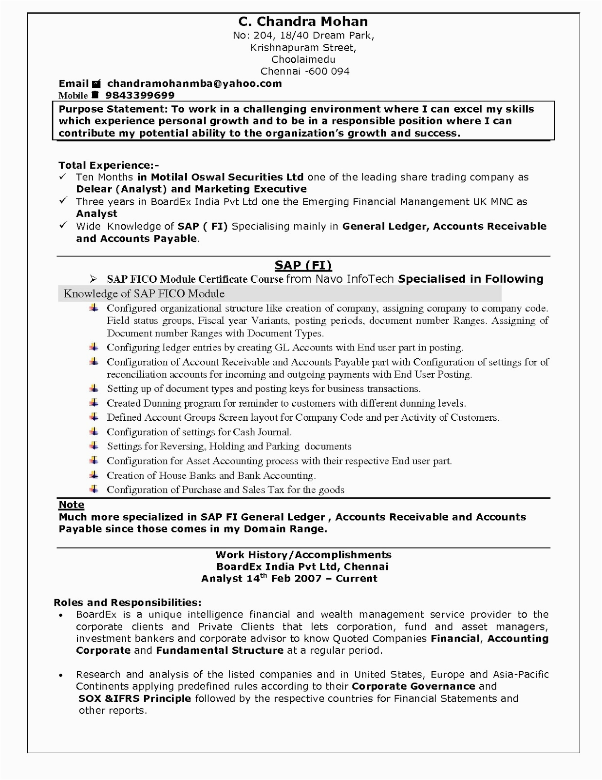 Latest Resume Format For Mba Finance Freshers