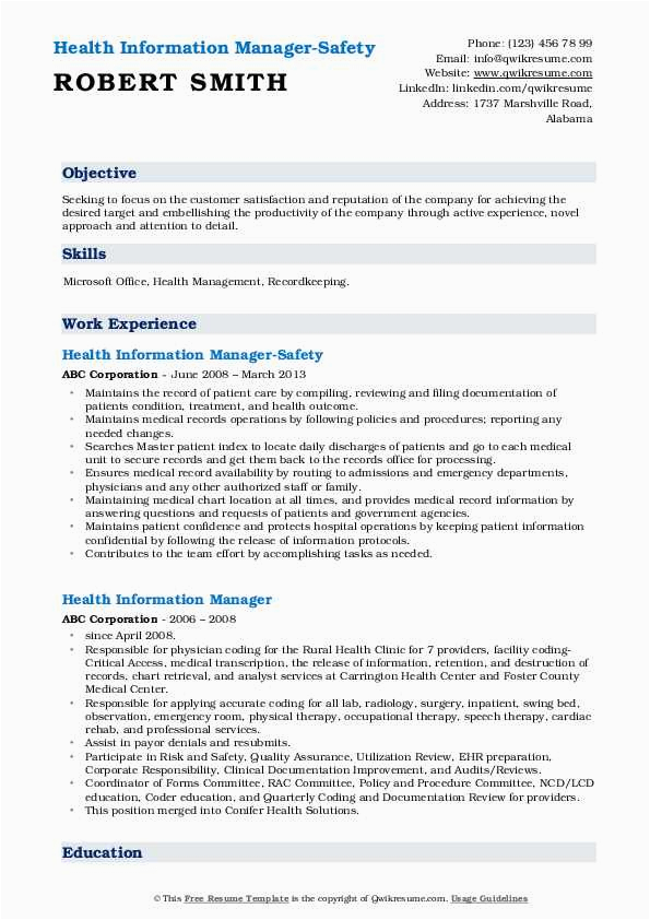 However, these are not your deserted options for locating sample resume health information management director. Your college or university circles will most assuredly have more than one resume template that you can use, and will be happy to put up to you. simply head on top of to their Placement Office and you will have a template in no time. After all, it is their job to support you locate employment, and as soon as you are affluent and a satisfied and favorably employed former student, it is moreover a feather in their cap.