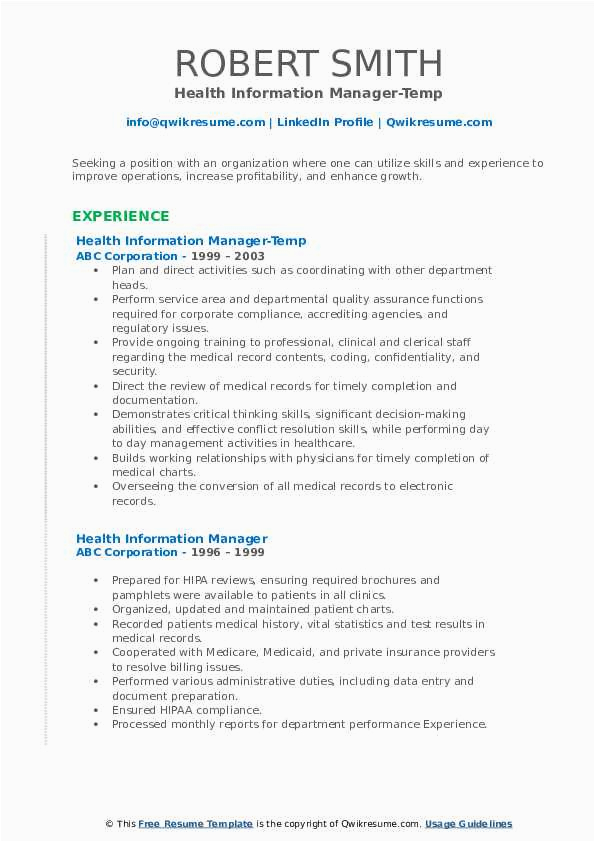 8 9 health information management resume sample