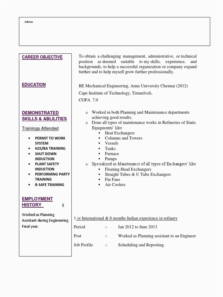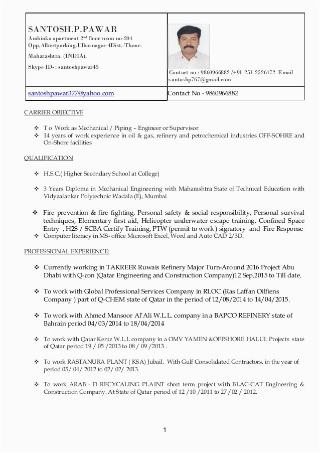 Back To Sample Resume Mechanical Engineer Oil and Gas