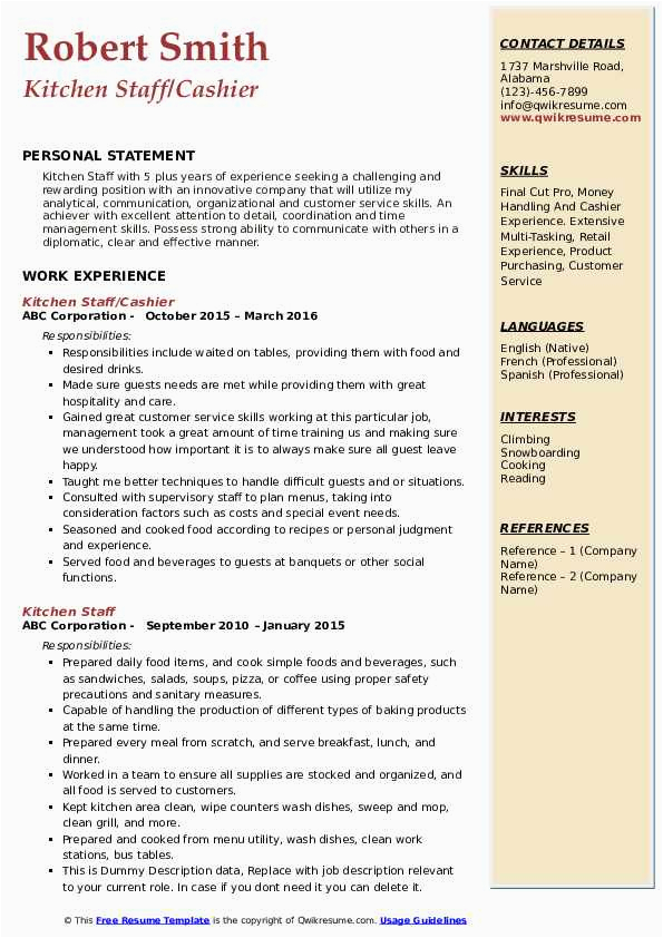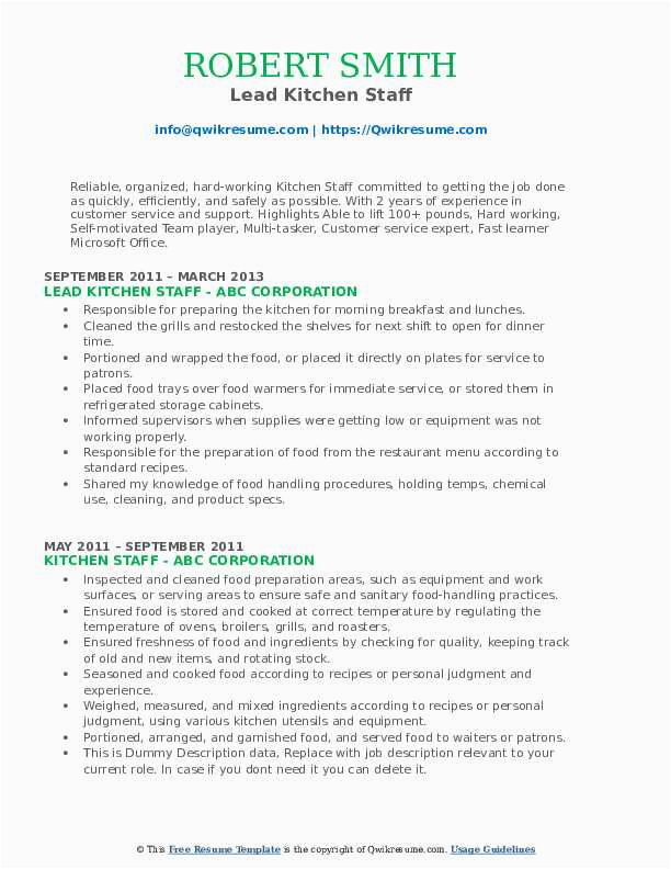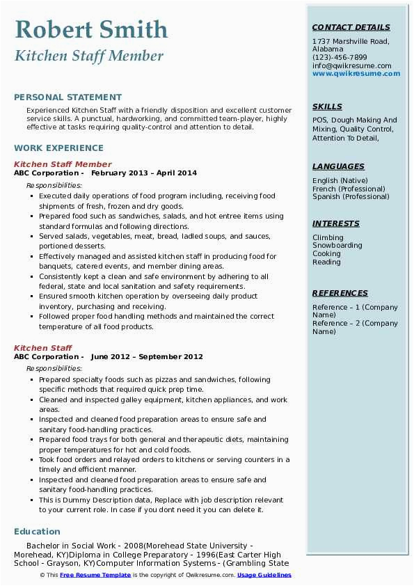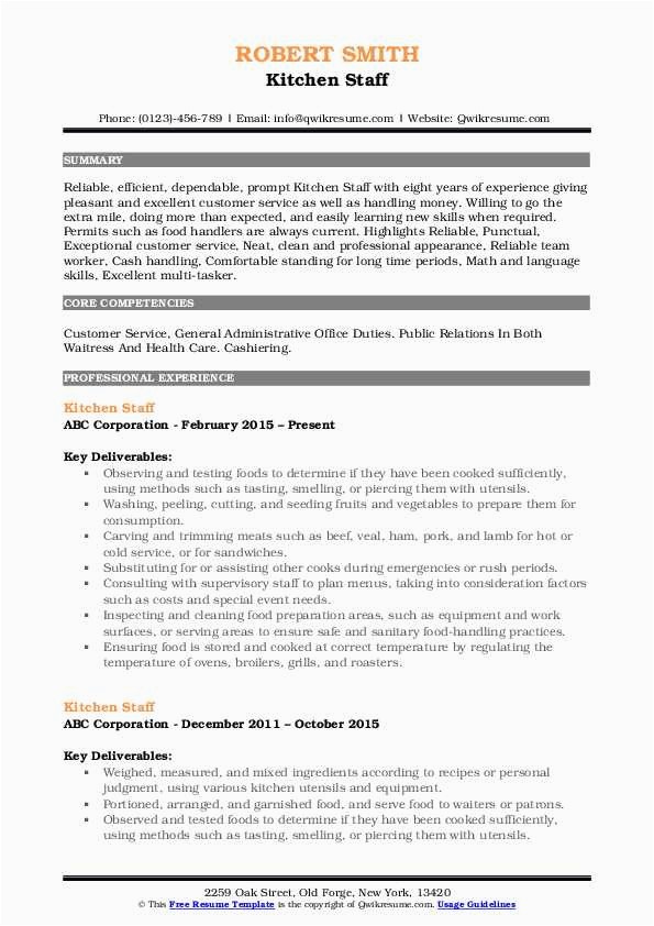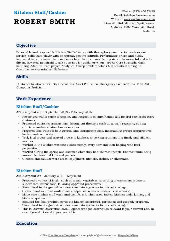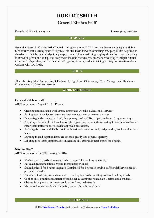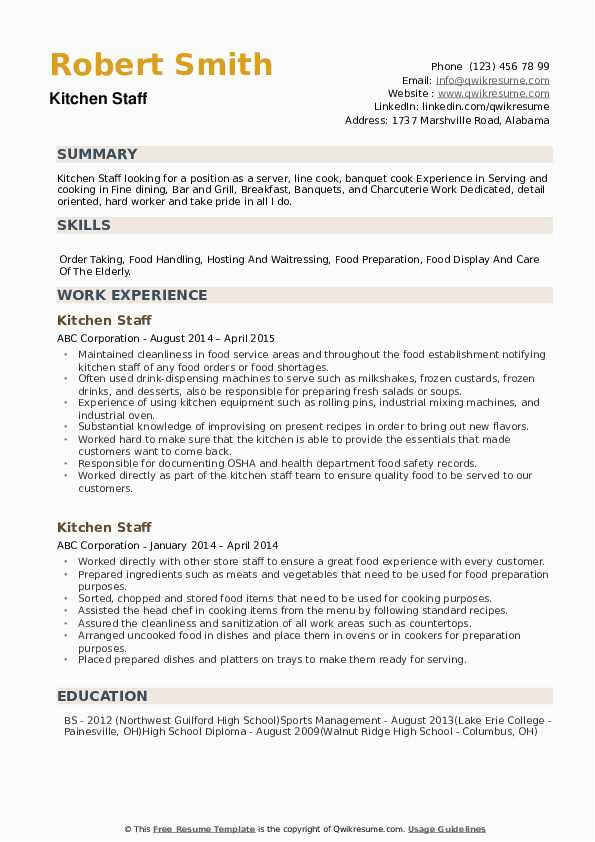 Sample Resume Objective for Kitchen Staff Kitchen Staff Resume Samples