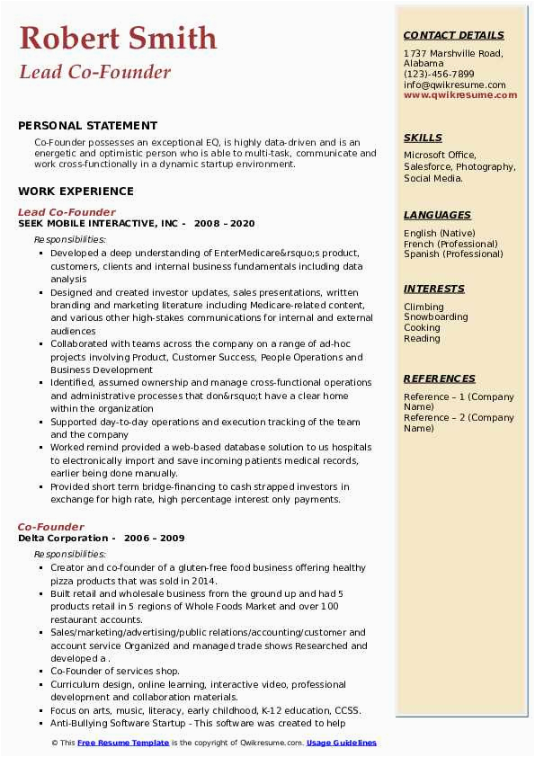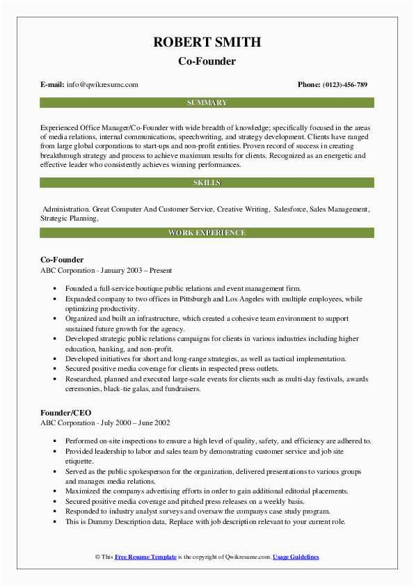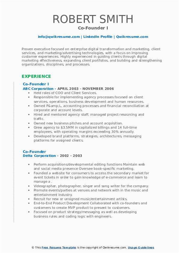 Sample Resume Of A Co Founder Co Founder Resume Samples and Templates and all other pictures, designs or photos on our website are copyright of their respective owners. we get our pictures from another websites, search engines and other sources to use as an inspiration for you. please contact us if you think we are infringing copyright of your pictures using contact page. we will be very happy to help you.