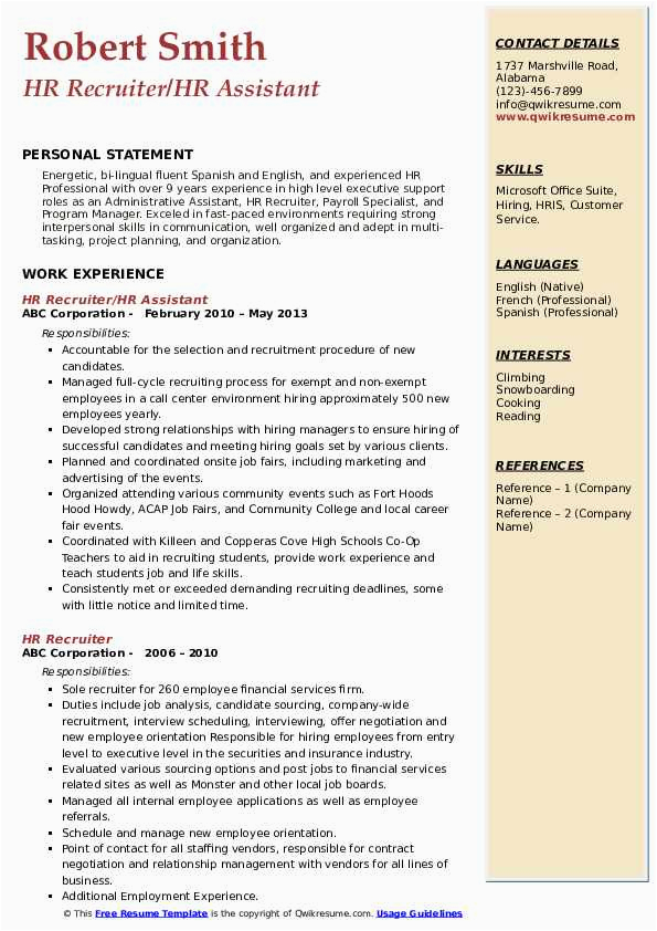 Sample Resume Of An Hr Recruiter Hr Recruiter Resume Word format 5 top Recruiter Resume Examples that and all other pictures, designs or photos on our website are copyright of their respective owners. we get our pictures from another websites, search engines and other sources to use as an inspiration for you. please contact us if you think we are infringing copyright of your pictures using contact page. we will be very happy to help you.