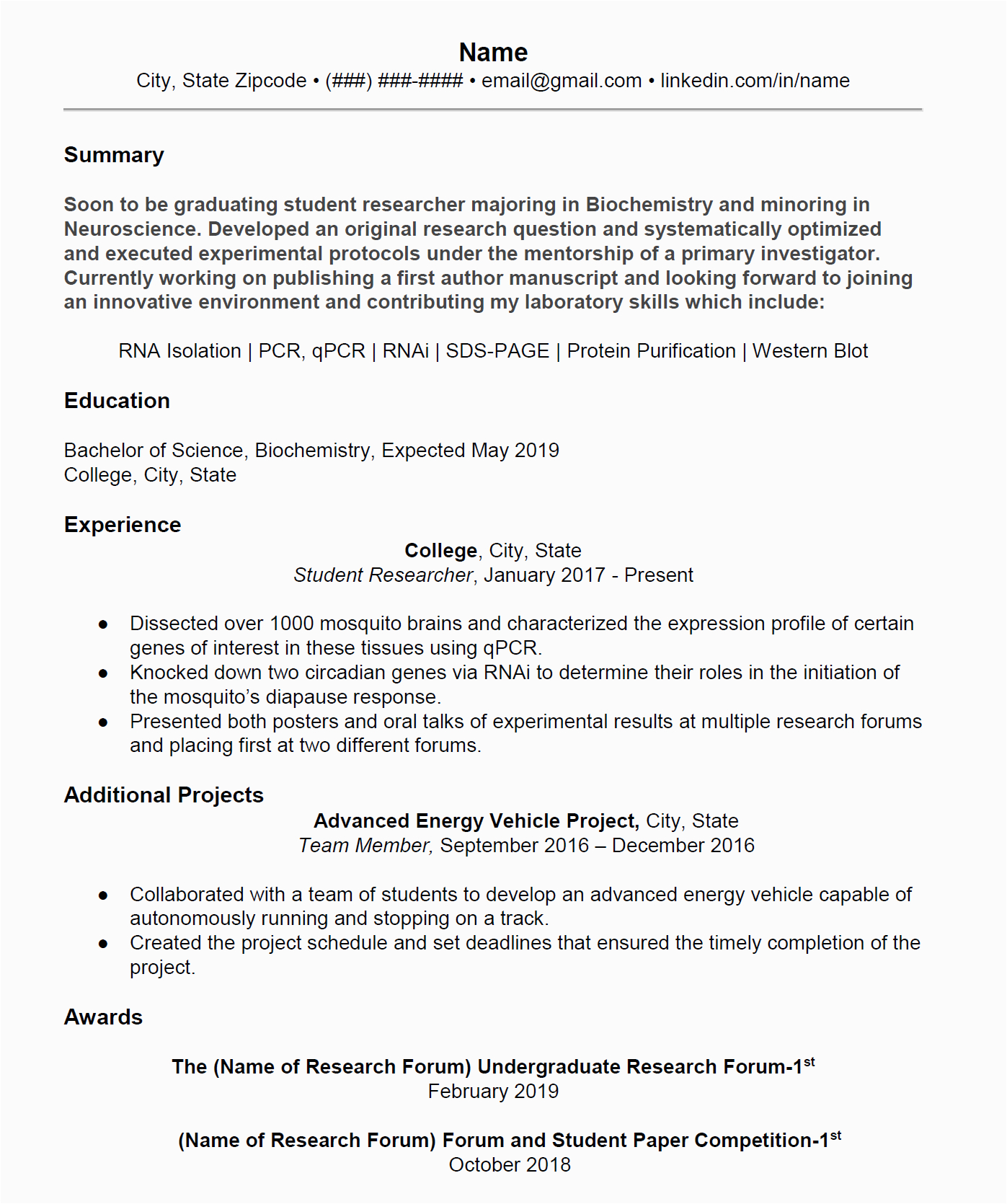 9 photos of the Sample Resume Of An Undergraduate Biochemistry Major