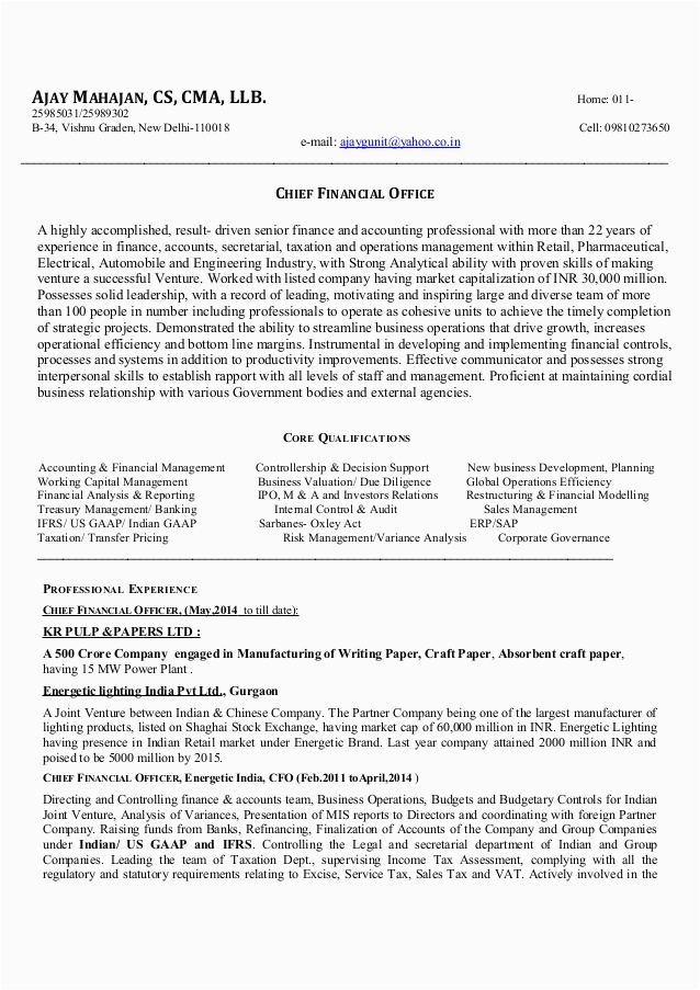 There are for that reason many options for you as you search for the perfect sample resume of cfo in india, and as soon as some hard law and perseverance on your part, you will find yourself past a first-class resume in no time, and hopefully, a first-class employer, as well!. For more recommendation upon resumes or for a sample resume of cfo in india checkout this recommended websites.