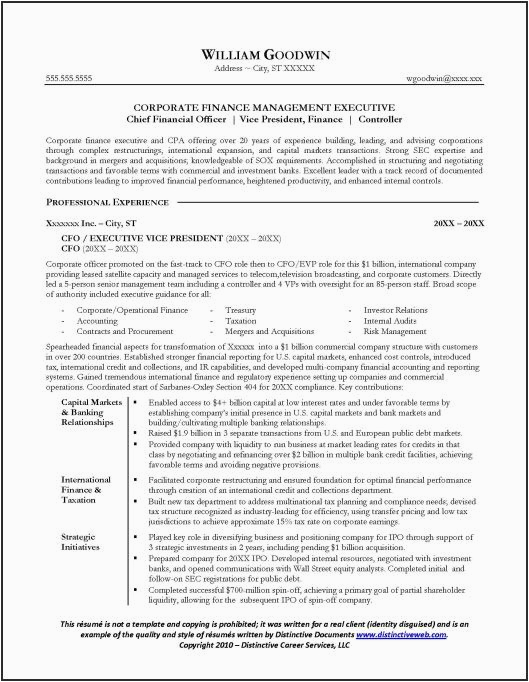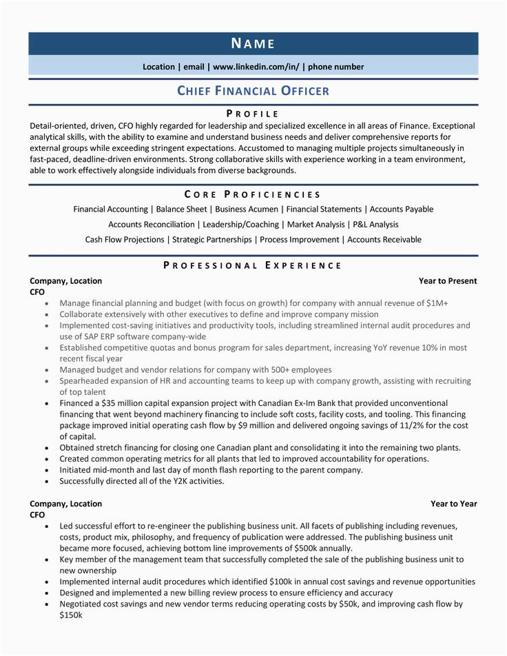 Chief Financial ficer CFO Resume Samples Template