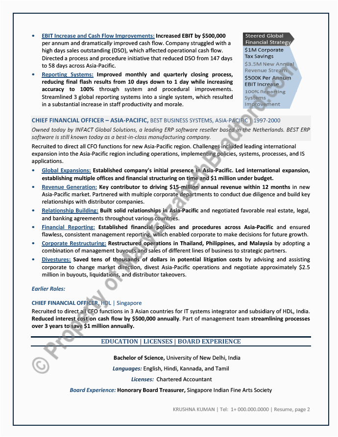 Sample CFO resume page 1 Resume Examples