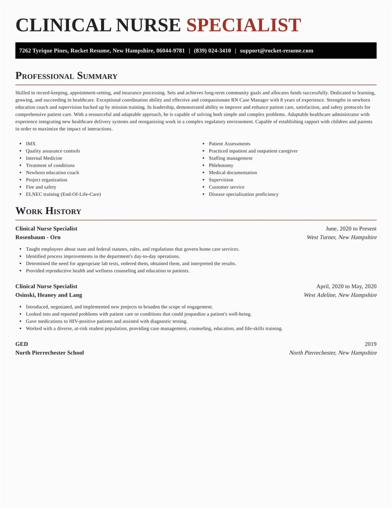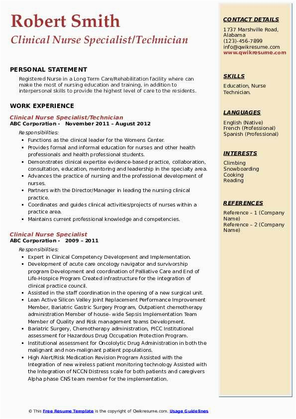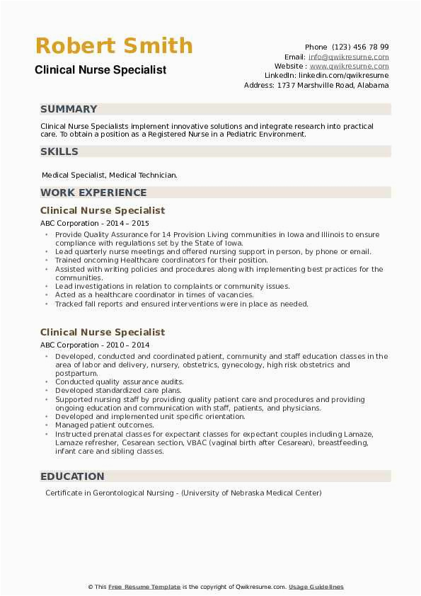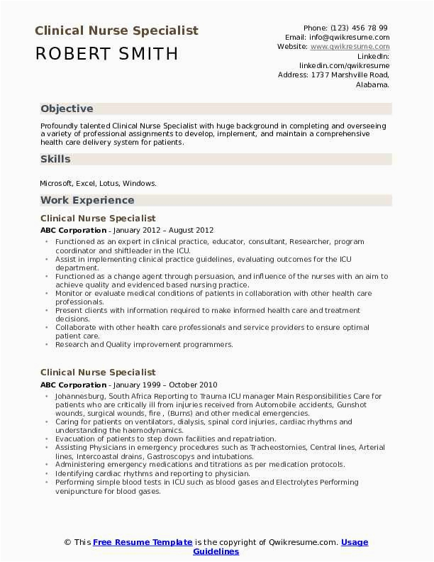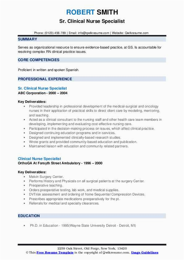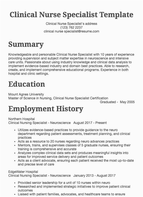 9 photos of the Sample Resume Of Clinical Nurse Specialist