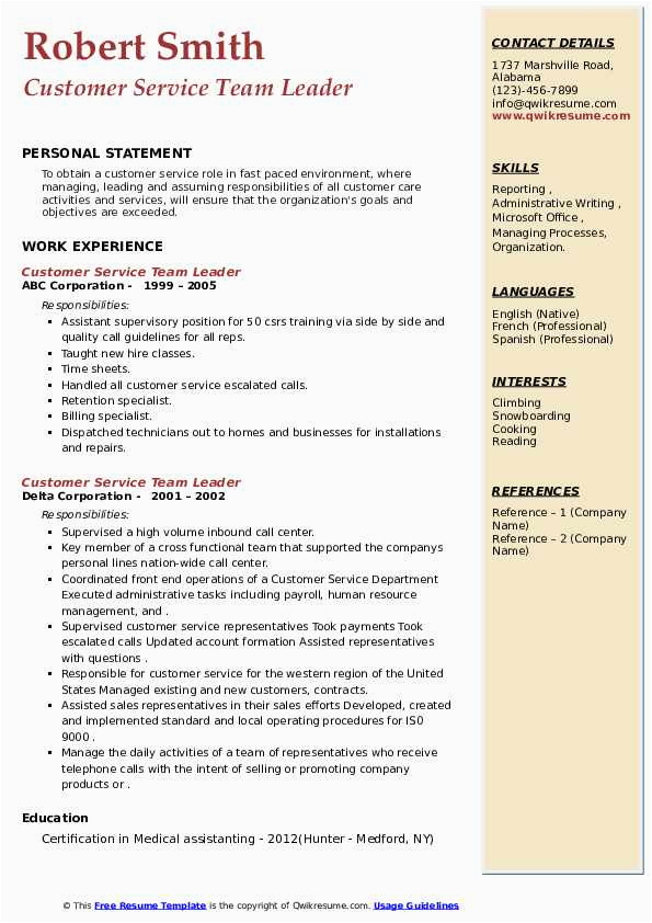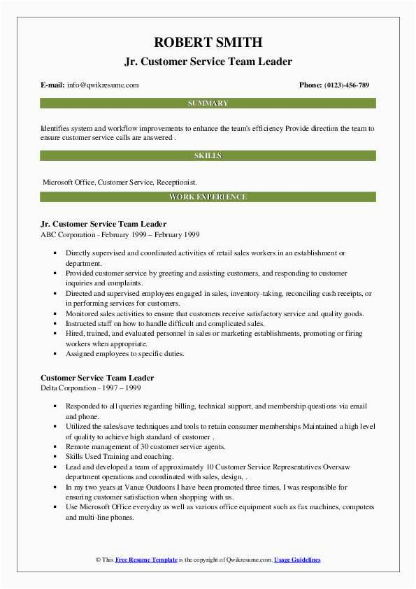 9 photos of the Sample Resume Of Customer Service Team Leader