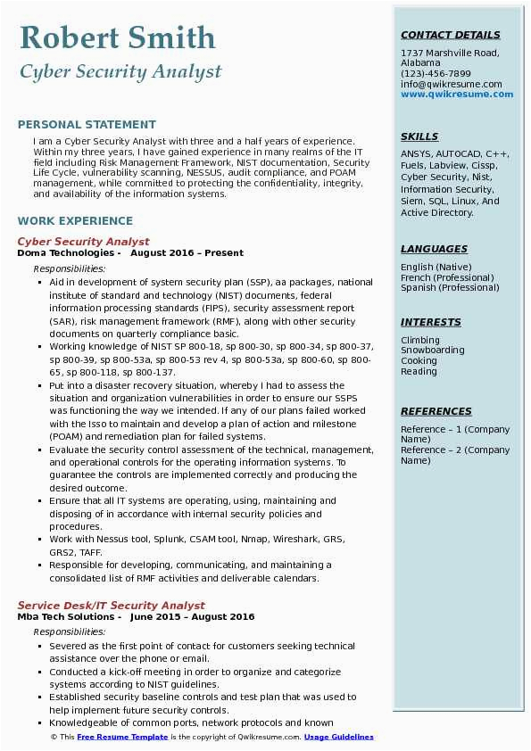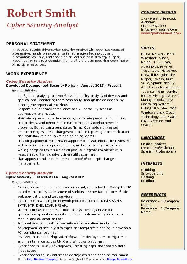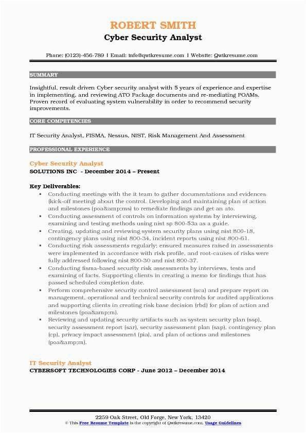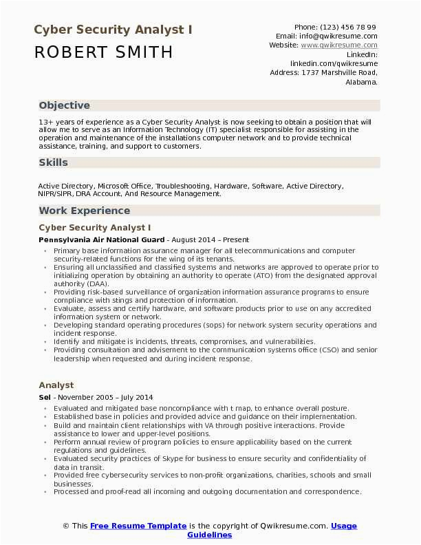 9 photos of the Sample Resume Of Cyber Security Analyst with Job Descriptions