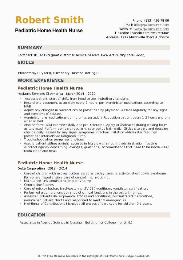 9 photos of the Sample Resume Pediatric Home Health Nurse