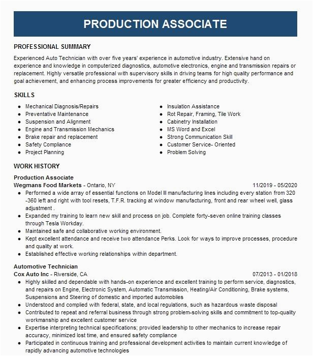 9 photos of the Sample Resume Production associate Tesla Experience