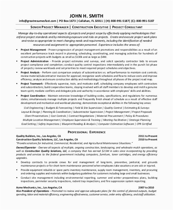 And for all website you come across that has a sample resume senior project manager construction, you will find that there are specialized templates for just approximately any type of resume you wish to create. You can find a sample resume senior project manager construction for an entry-level position, and you can locate a template for just very nearly any type of job or career you are looking for.