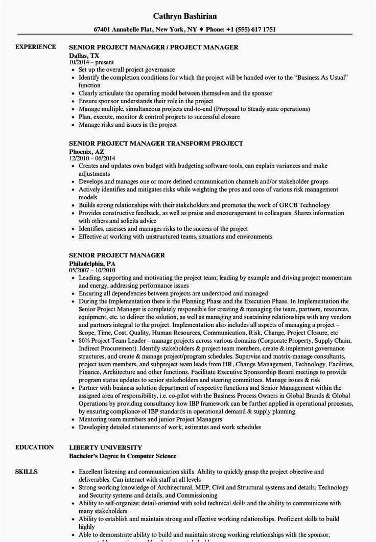 With you are searching for the perfect job, you will of course want to put your best foot refer next an impressive and well-formatted resume. One mannerism of assuring that you have such a resume is to download a sample resume senior project manager construction. These templates can present you in the manner of the precise resume you are looking for or simply use them as a lead to make your own.