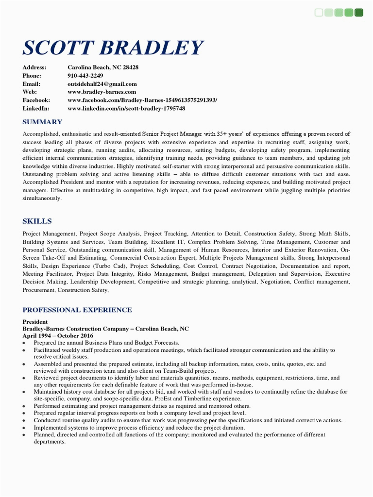 There are therefore many options for you as you search for the perfect sample resume senior project manager construction, and when some hard function and perseverance upon your part, you will locate yourself afterward a first-class resume in no time, and hopefully, a first-class employer, as well!. For more guidance upon resumes or for a sample resume senior project manager construction checkout this recommended websites.