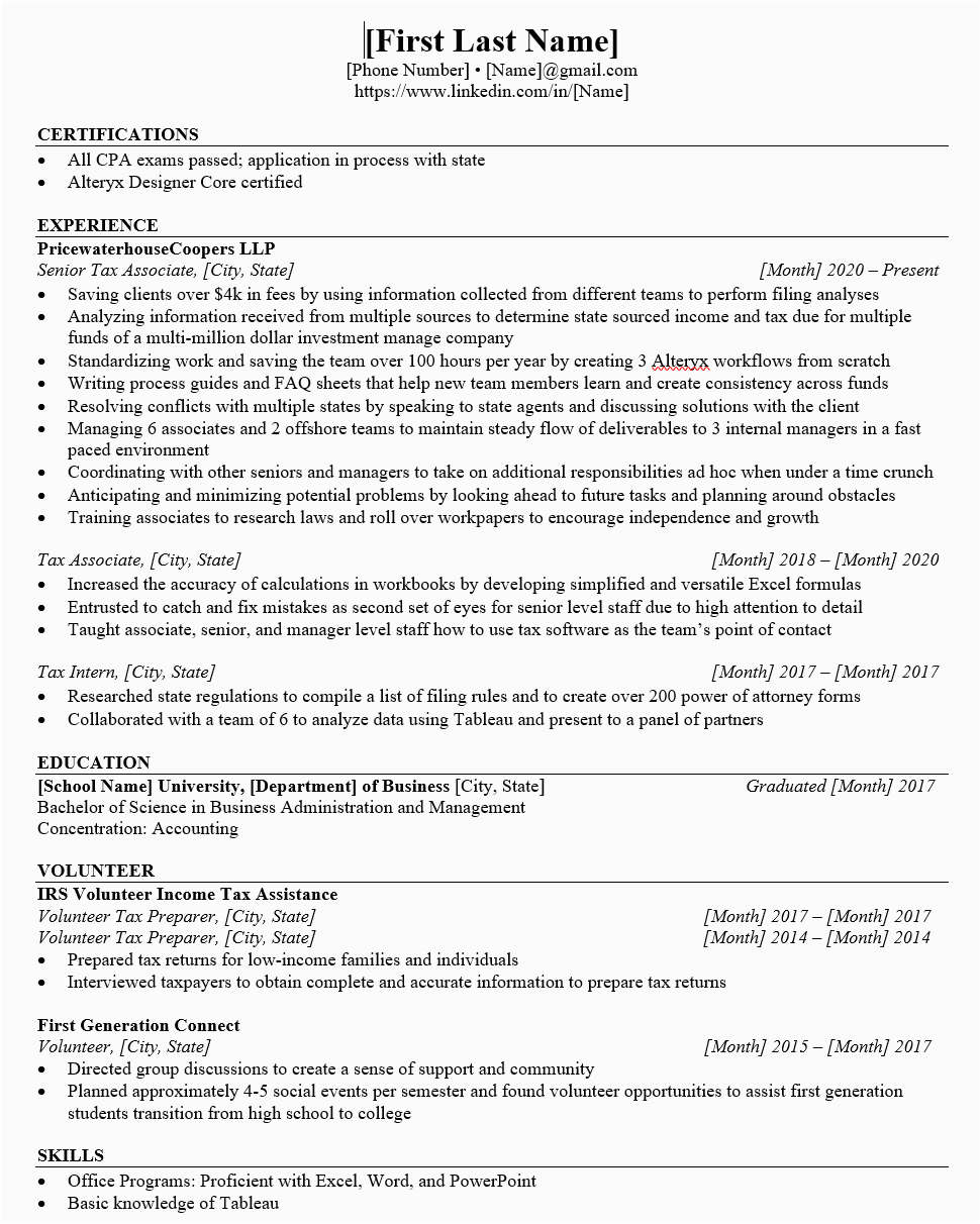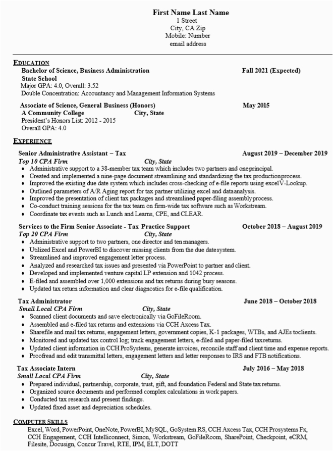 9 photos of the Sample Resume with Big 4 Tax Experience